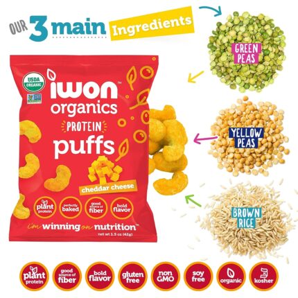 Iwon Organics Protein Puffs Cheddar Cheese Flavor, Vegan