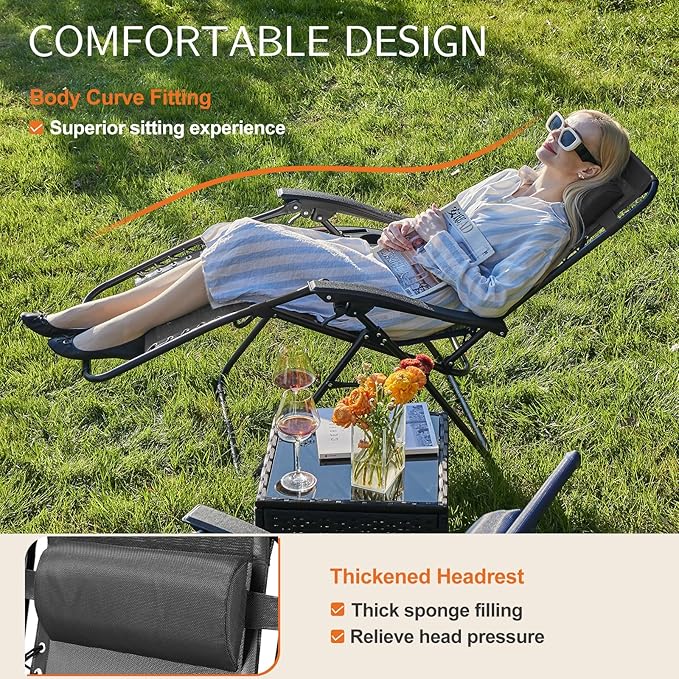 - 【Comfortable Design】Fits your waist curve and gives you a comfortable feeling. The durable metal frame can hold up to 330lbs. This zero-gravity chair is the first choice for those who want to rest or take a nap on camping, beach, poolside or lawn.
